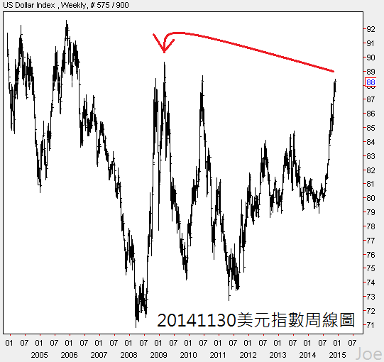 不管是從波浪結構還是總體經濟來分析,美元指數價位未來數年內超過2009年高點幾乎是時間問題,美國貿易逆差未來還會縮小,美國金融帳的淨流入穩定成長,淨流出呈現負成長,這樣的背景之下,美元還會繼續維持強勢,美國共和黨接下來再參眾兩議會的目標會是解禁原油出口,全球許多地區對能源的需求還是存在的,尤其是東亞,能出口原油對美國的經濟幫助會相當大,這樣的效益還會增強美元需求,不過這是數年後的事了,短線提升美元的誘因主要還是在於美元升息,只要息差拉大,美元就能繼續吸引熱錢,穩定升值 |