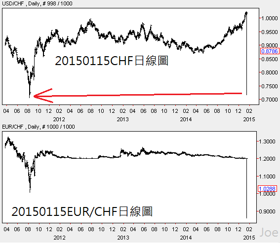 5. 請問Joe大, 瑞郎對美元及歐元非理性大幅升值後, 瑞士央行稱歐QE是重大風險, 仍準備進行外匯干預, 現在是做空瑞郎的好時機嗎?