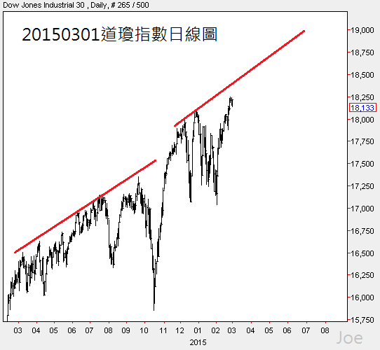 美股三大指數NASDAQ、S&P500和Dow Jones都表現相對亮眼,今年上半年的規劃,我還是以謹慎看待,雖然聯準會在9月升息的機率最高,但我還是以6月為警戒,寧可少賺,也要提前下車,準備靈活現金,等待美股修正後再進場,道瓊指數19000出現的速度是非常緩慢的,除非IBM等成分股突然爆走。