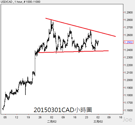 加拿大幣進入盤整模式,只要原油能再進入下跌趨勢,加幣就會繼續貶值,短線上油價可能持續反彈,那麼加幣的跌勢就會延後出現,我對加幣長線走跌的看法不變