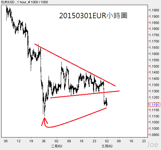 歐元好快就跌破一月低點,接著就朝Joe大先前研判的1.08邁進