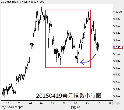 美元指數上週一度有機會一個短線底部型態,不過上周五的回測太深,這個底部型態又被破壞掉,美元指數近期又會重演最近一個月的96~100區間震盪走勢,投資人要看到新突破得再耐心等等。