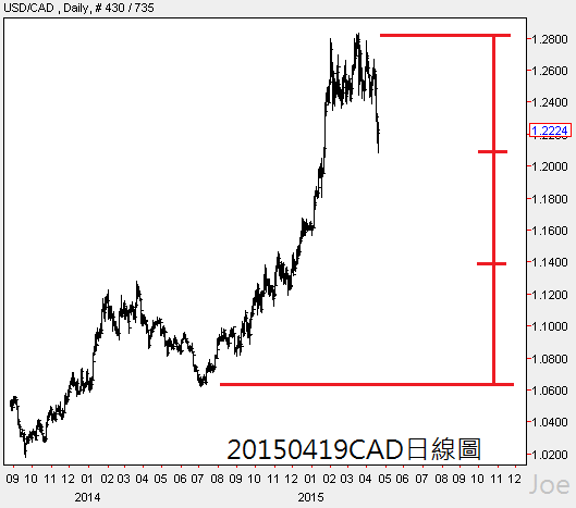 隨著油價出現關鍵性突破,CAD跟進大反彈,我預估這是2014年7月以來的跌深反彈行情,低油價對加拿大的經濟是負面的,但美國的經濟復甦對卻加拿大是正面的,如果美國的經濟成長可以拉抬加拿大的經濟和通貨膨脹率,那麼加拿大幣後續就能止跌反彈,這兩股力量正在拉鋸,短線上還無法判定何者較大