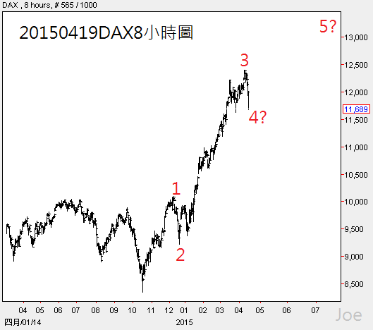 受惠於歐元大幅貶值和歐洲央行QE政策,德股DAX半年來大幅上漲,我認為如果聯準會是第三季才升息,那麼DAX未來三個月還有機會再向上攀升,發展一個一個上漲衍生浪,超越13000,這樣波浪結構上會更漂亮,比對很多德國的經濟數據來看,德國經濟明年很高機率會出現相當大幅度的成長,可以樂觀期待