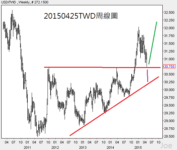 我這裡的逃並不是不看好美元。只是04/27一早發現自己應該在04/24先獲利了結,然後從04/28開始再分批買進美元。04/24沒賣美元,結果是這一波幾乎都沒賺到(有人可能更慘,說不定買在2015/01的31.9)。先獲利了結固然可以賺得更多,但比較辛苦,而且可能每天都要看盤。如果自己還有其他事情要忙的話也不可能這麼做。(以上一段是單純買賣外匯而論)