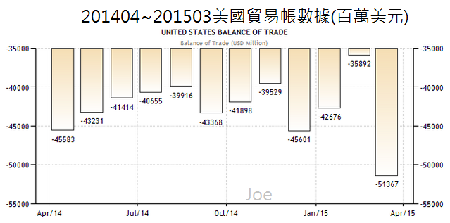 從數據來看,美國3月份貿易逆差大幅暴增,上一次出現這數據是2012年第一季的時候,表面上看起來,美國進口顯然更大於出口額,這對強勢美元不利,反而對弱勢美元較有利
