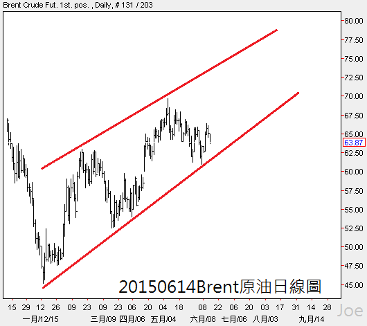另一方面,如果油價維持溫和成長,那麼美國頁岩油業者又會捲土重來,增加產量,只要供給又超過需求,那麼油價又會回到跌勢,我估計今年內,Brent原油不會有太強的漲勢或跌勢,這樣的油價變化對全球景氣較有利,第四季以後,全球景氣會比現在來的更好些,而2016年又會比今年更好