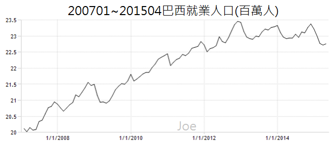 巴西的就業人口不徵反減,非農業相關產業的淨就業人口進入負成長,失業率止跌反彈,民間就業環境變差,人民收入不穩定,開始對民間消費造成負面影響。