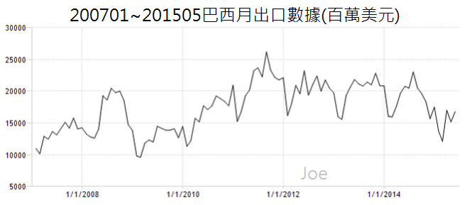 巴西的服務業佔GDP比重高達69.3%,工業佔GDP約25%,而農業只有5.7%,政府支出佔GDP比重22%,巴西是民間消費兼原物料出口的內需消費型經濟體,如果人民沒有穩定的就業成長和收入來源,進口項目也會受到一定程度的負面影響,從2014年開始,巴西進口數據已經轉為下滑。