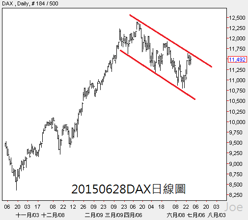 德國股市目前接近上方紅線,投資人短線上得多注意希臘問題了,公投沒過的話,金融市場可能會再有大震盪,可以透過這個Bloomberg的影片來了解歐元區的政治問題