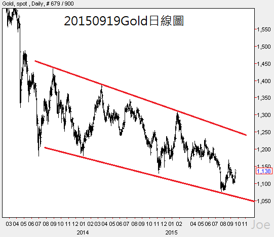 黃金短線上會繼續在雙紅線內盤整,雖然聯準會沒有升息,貴金屬短線有反彈,但那只是跌深反彈走勢,並非趨勢反轉,貴金屬長線仍然是偏空趨勢