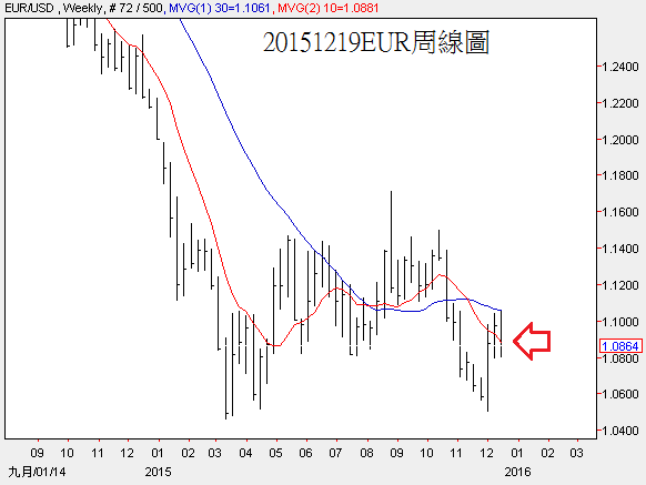 歐元的價格守在周線的短(10、紅)均線,如果下周收周線,歐元沒辦法守在這個價位之上,那麼後續繼續走跌的機率就相當高了