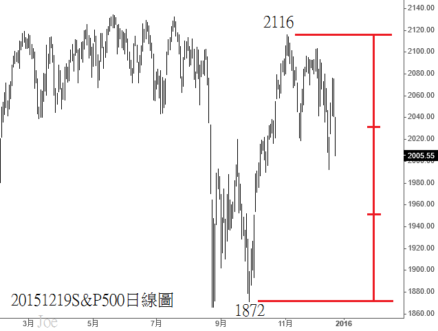 美國聯準會如預期的利率了,不過美股三大指數收周線全面暴跌,S&P500正在進行9月中以來的漲多回檔修正,同時反映升息的利空壓力,收周線跌破回檔1/3的位置,接下來目標是回檔1/2的價位,投資人對美國長線景氣有信心的話,仍然可以考慮分批加碼美股,切記做好籌碼控管,避免造成摸底過程心理壓力太大