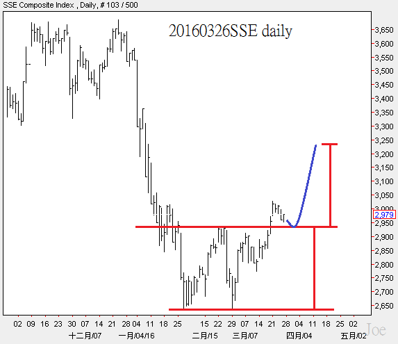 中國上證指數短線上完成一個底部型態我預期發生機率較高的是藍線走勢只要回測頸線能夠撐住那麼第二季就會展開這波反彈行情目標約在3200~3250之間等價格出現後,再來判斷當下的線圖型態是否支持進一步上漲短線上中國股市轉為樂觀的機率較高