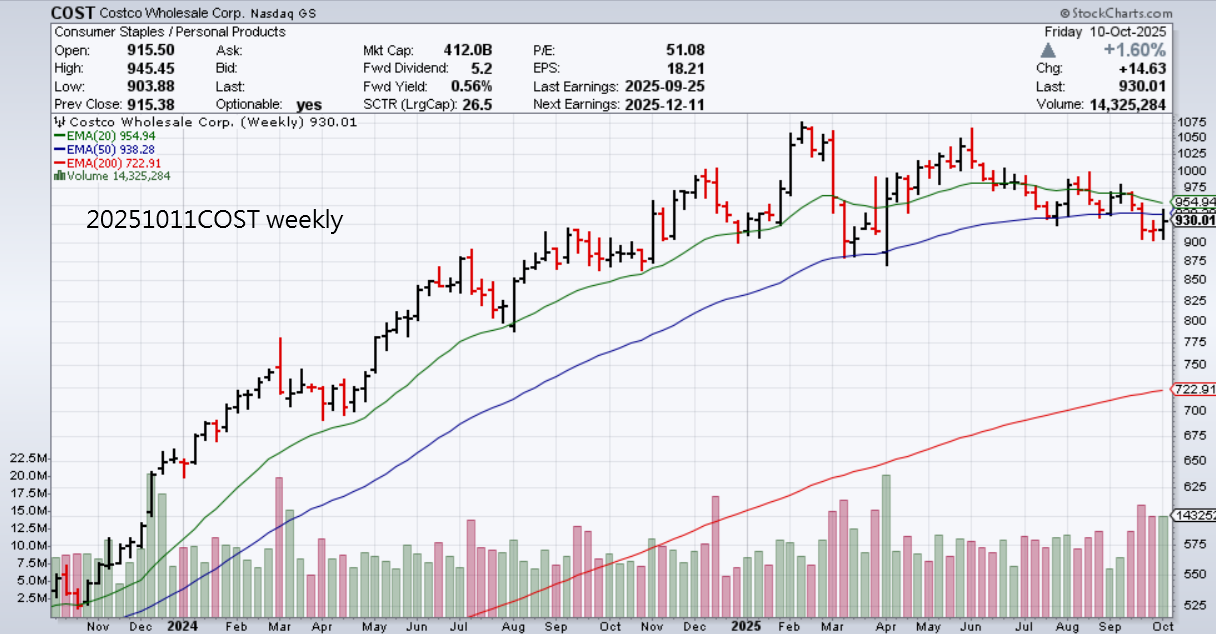 COST一直都是營運狀況很不錯的企業,截至最近一次的財報,成績也沒有轉弱,短線暫時滑落到藍色均線以下,相對於科技股的火熱行情,COST在2025年算是表現相對平庸,但COST前景有轉弱嗎?